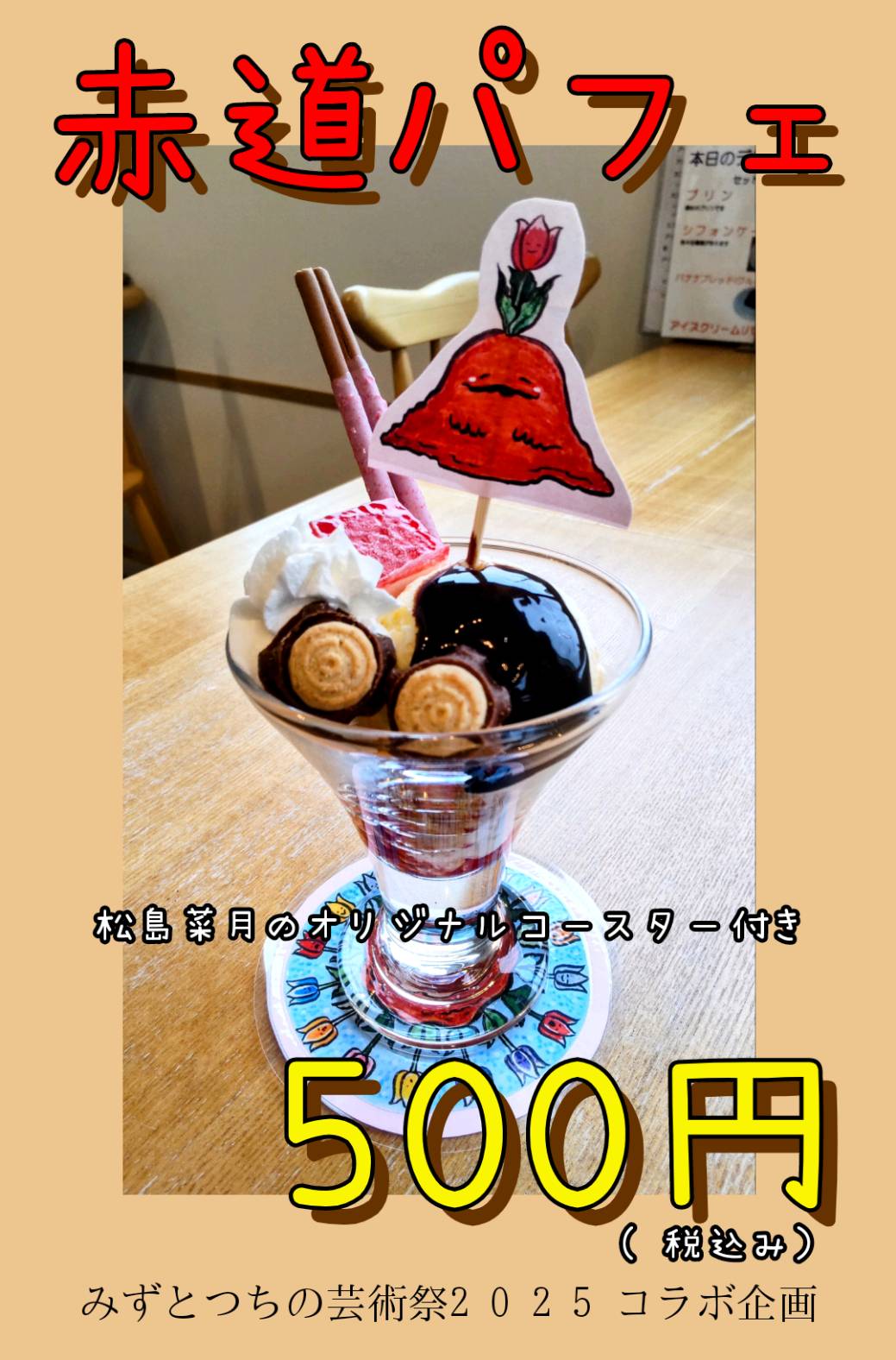 フライヤー・ホームページの料金が間違えておりました。大変申し訳ございませんでした。 正しくは、500円(税込み)です。 赤道パフェ >> カフェまる。 >>